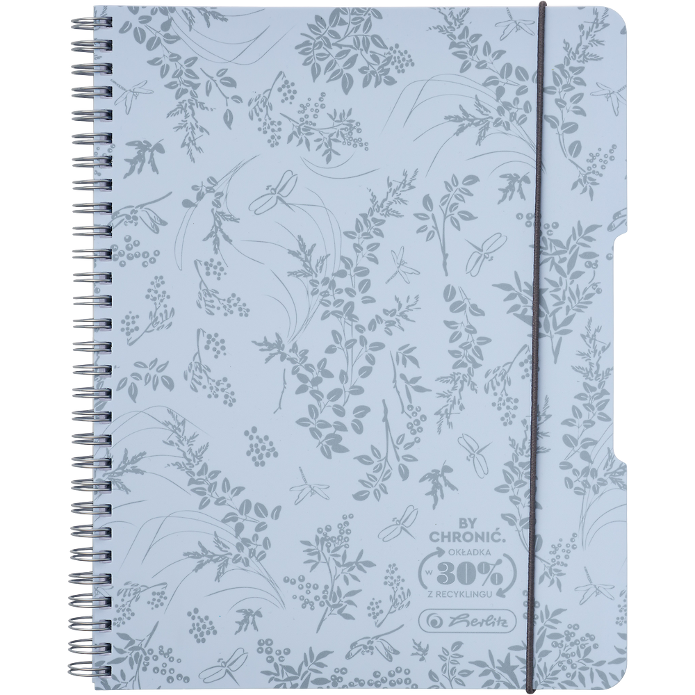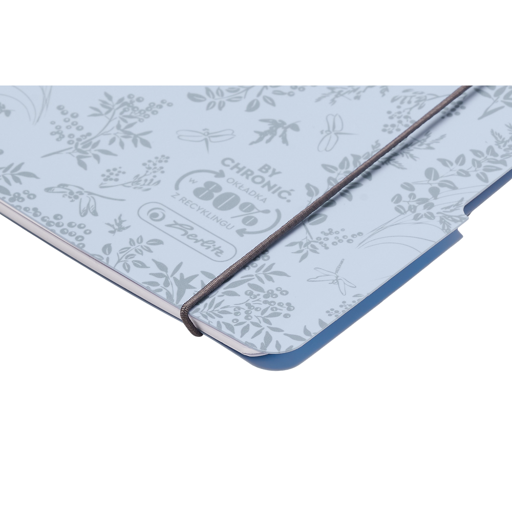 - Błękitny kolor okładki z botanicznym nadrukiem