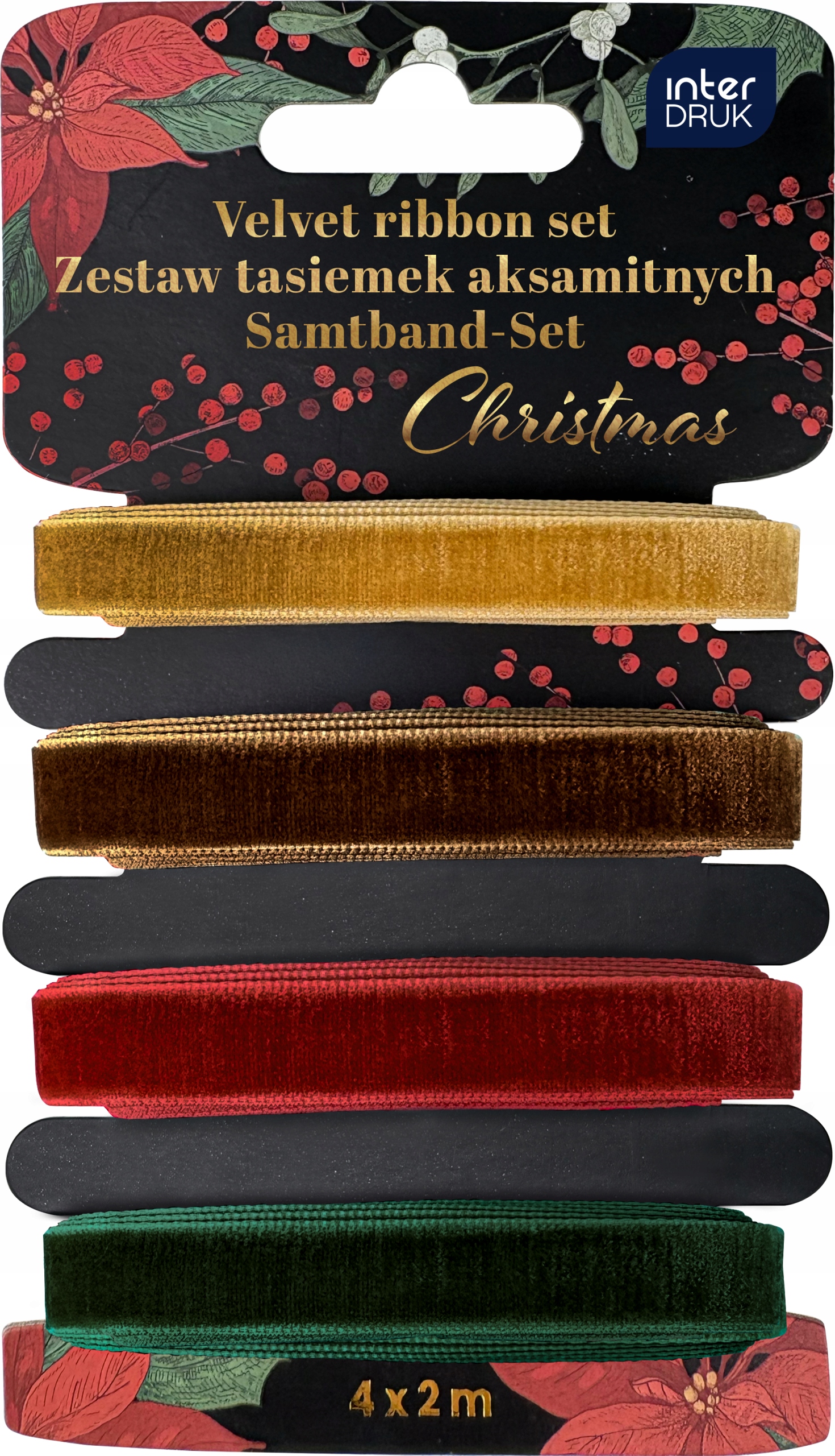 Zestaw tasiemek aksamitnych 4x2m Christmas INTERDRUK jest do kupienia w przyrostach co 1